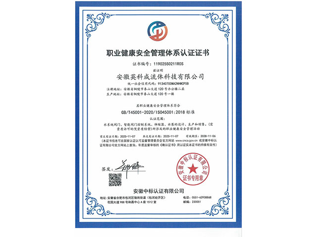• 職業(yè)健康安全管理體系認證證書